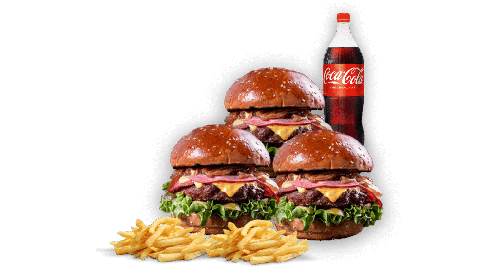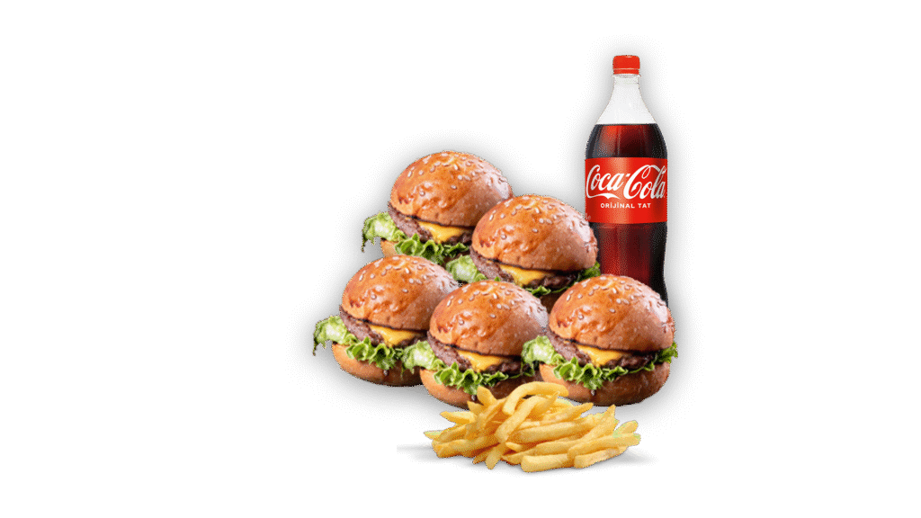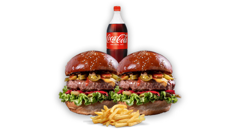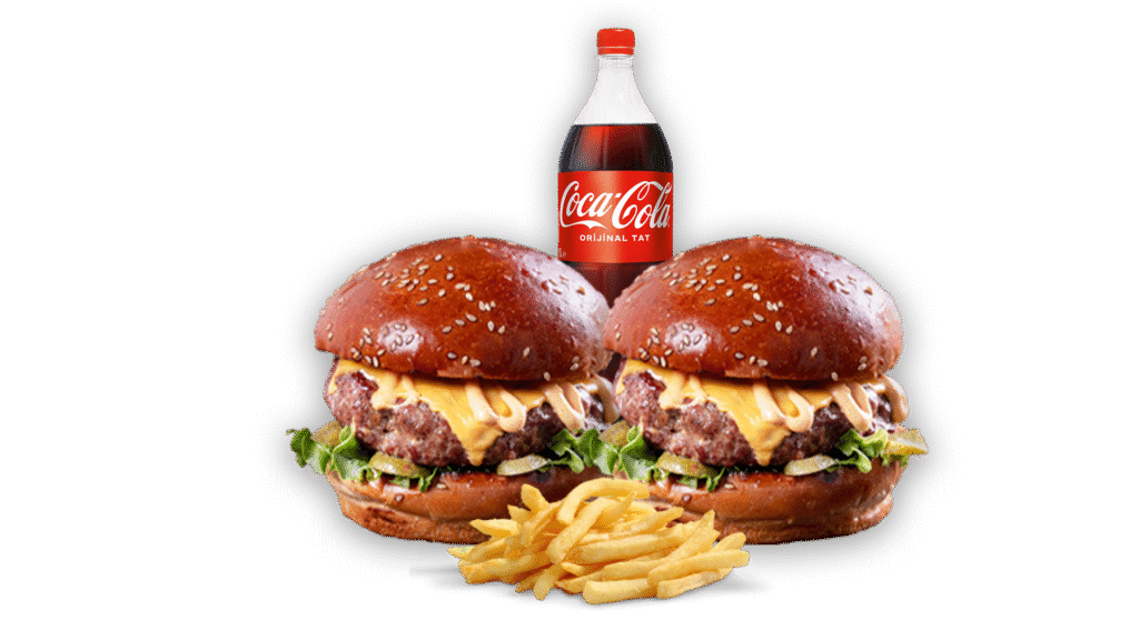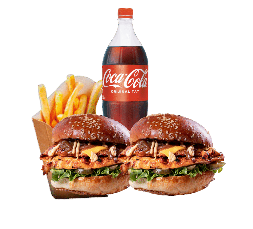 Cheddar Chicken Menü İçindekiler:2 adet Cheddar Chicken Burger, Kızarmış Patates, 1 Litre İçecek Fiyat:861₺